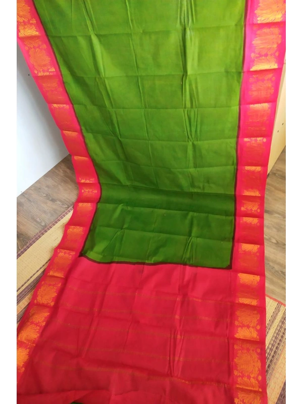 Vibrant Parrot Green Sungudi Cotton Saree with Striking Rani Pink Zari Border-SCS0051