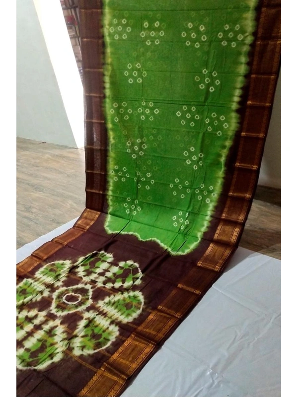 Homepage Our Shop Sungudi Sarees Pattern Sungudi Sarees A contrasting cocoa brown/deep copper border with traditional golden zari floral vine work -SCS00271
