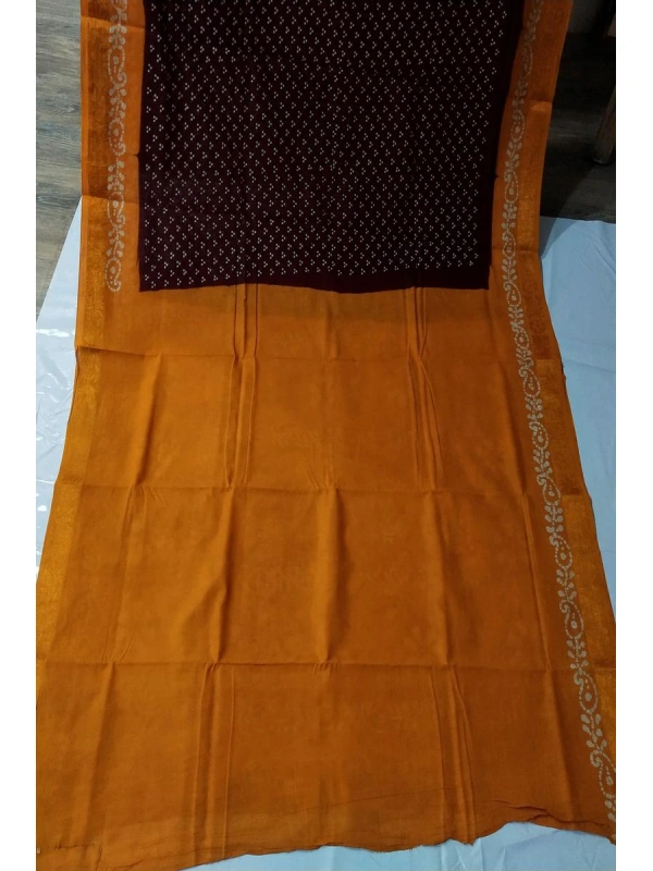 Homepage Our Shop Sungudi Sarees Pattern Sungudi Sarees A deep coffee-brown body contrasted with warm ochre-yellow borders and pallu -SCS00321