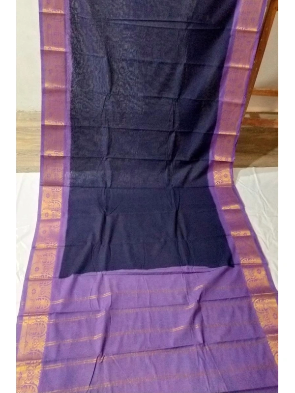 Homepage Our Shop Sungudi Sarees Plain Sungudi Sarees Deep Navy Blue Sungudi Cotton Saree with Elegant Purple Zari Borders -SCS0071