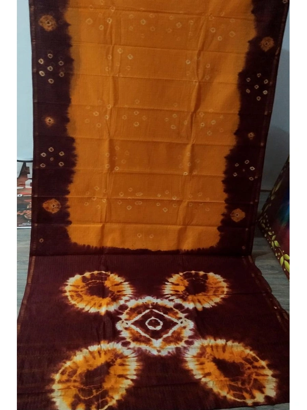 Emphasizing the large circular tie-dye patterns and delicate hand-dotted motifs -SCS00141