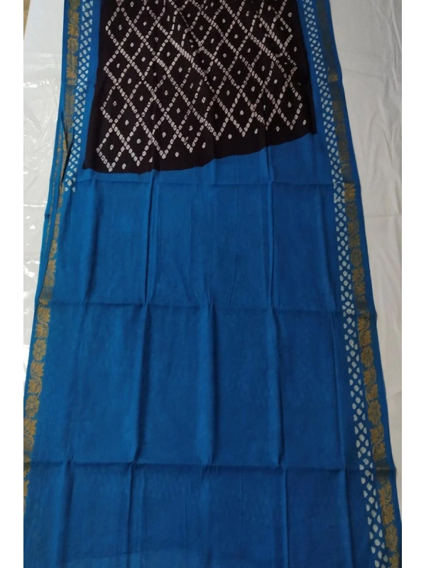 Homepage Our Shop Sungudi Sarees Pattern Sungudi Sarees Midnight Black & Cerulean Blue Hand-Block Batik Cotton Saree -SCS00179