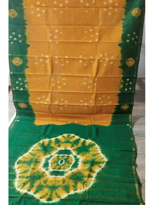Mustard and Emerald Green Tie-Dye Bandhani Cotton Saree-SCS00171