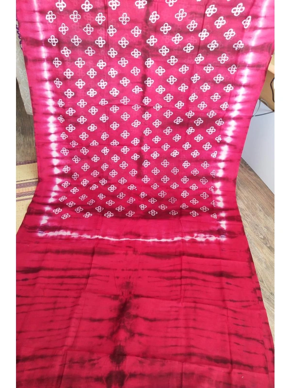 Homepage Our Shop Sungudi Sarees Pattern Sungudi Sarees The main body features a bright magenta base with a white geometric "four-petal" -SCS00183