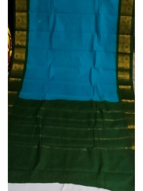 Homepage Our Shop Sungudi Sarees Plain Sungudi Sarees Turquoise Blue Sungudi Cotton Saree featuring Deep Green Zari Borders and Rich Floral Motifs -SCS0041